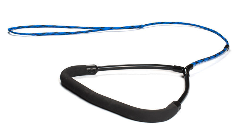 Our Ergo Custom Handle with the bent end design. This handle is designed to prevent the handle from rolling in your hand. Its sides extend toward the boat giving it a great anti-roll feature. The bent ends also help for those times when you miss-grab the handle and grab over the side of the handle. These handles are made with specially formulated EPDM Rubber and strung up with spectra fusion rope. This bar is completely made in the USA. The handle has a 20% radius bend for ergonomics.Details: