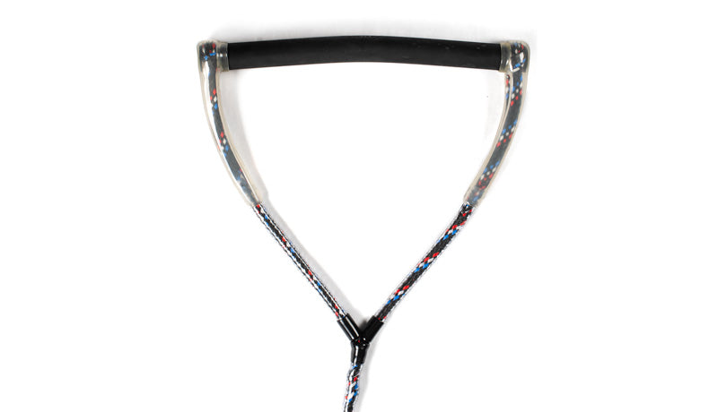 Radius version of our all-new and exclusive Super Spectra Anti-Roll Custom Handle. Our top-of-line Custom bar strung with our "Super Spectra" 8mm spectra fusion rope provides an amazing connection to the rope. The Anti-Roll stringing prevents the handle from rolling when you grip it or release it with one hand. Clear end-caps so you can see how it is strung. Black spectra with USA accent fleck. Made in the USA!
