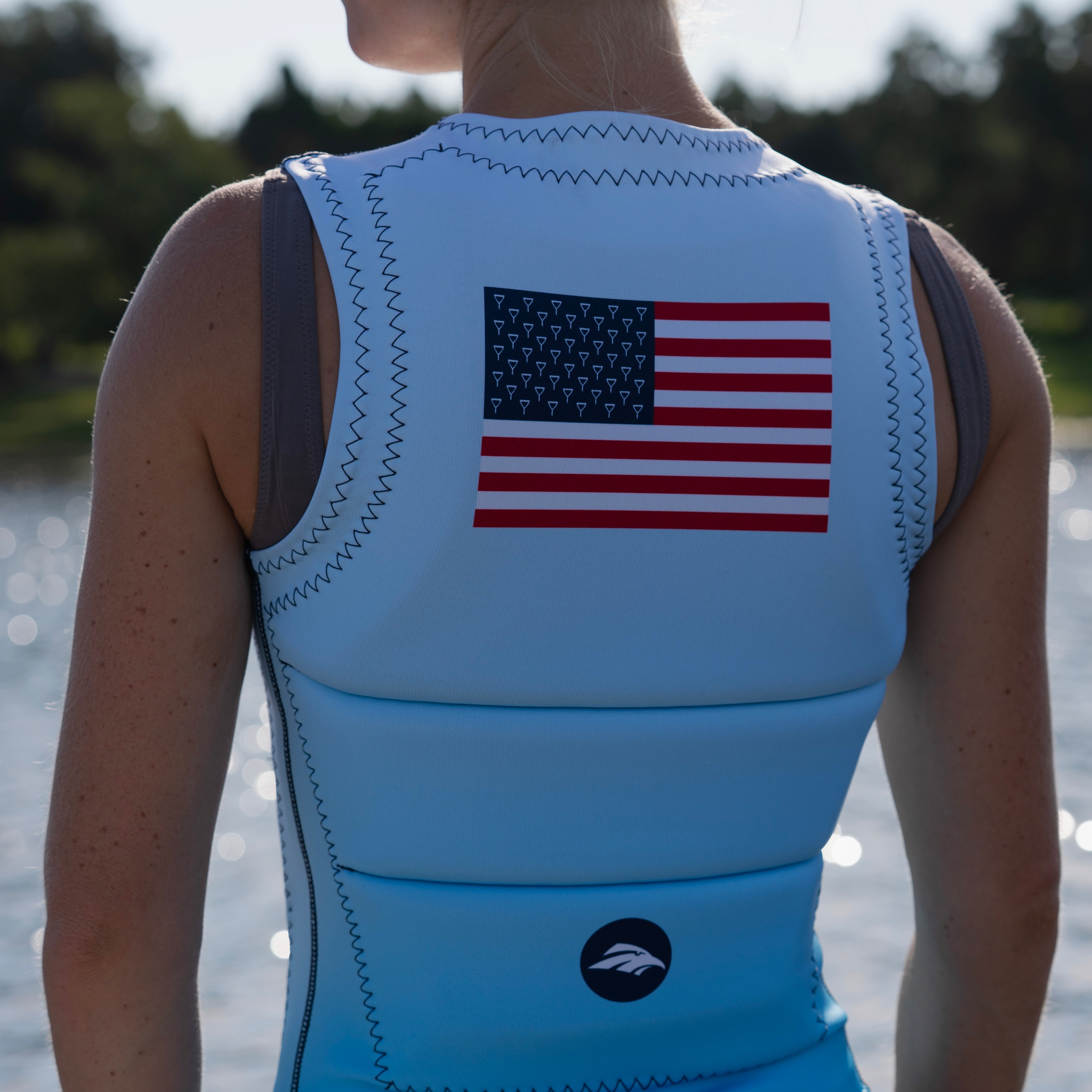 The 2026 Women’s Impact Vest carries forward the same beloved foam pattern from our 2025 line, now refreshed with thoughtful new details. Featuring navy accent logos, a USA handle logo, and a striking blue fade, this vest delivers a clean, beautiful look that embodies both performance and pride.