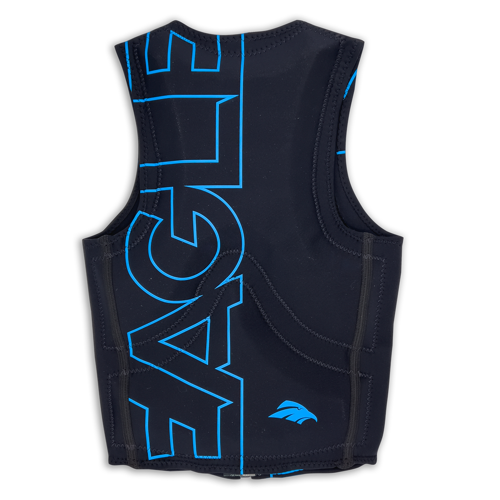 The Pro Logo vest uses a high-grade soft neoprene.  The vest is designed to offer a great fit, support, and comfort.  This vest offers a little more stretch than our standard sublimation vest and will fit a wider range of people. All Eagle vests are designed with 1 layer of neoprene and foam directly stitched to it.  This prevents the vest from holding any water for lighter weight and faster drying.